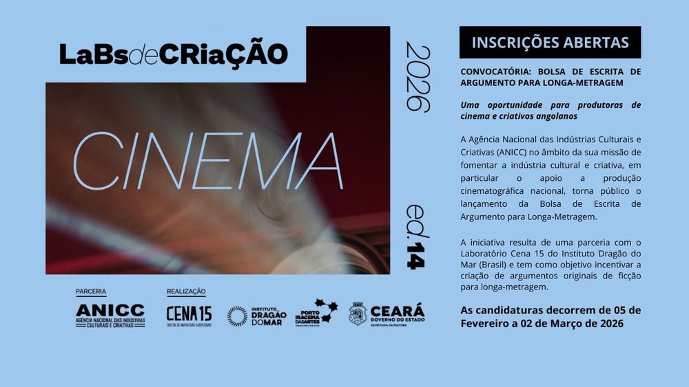 A Agência Nacional das Indústrias Culturais e Criativas (ANICC ) no âmbito da sua missão de fomentar a indústria cultural e criativa, em particular o apoio a produção cinematográfica nacional, torna público o lançamento do Bolsa de Escrita de Argumento para Longa-Metragem.